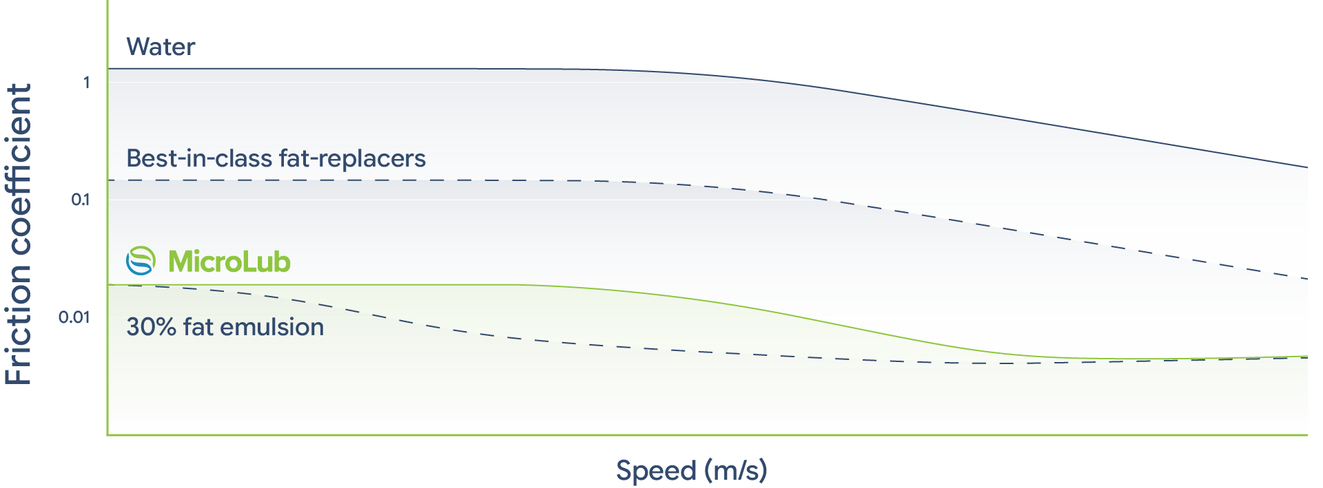 Our technology reduces molecular friction by two full orders of magnitude compared to water, and one full order of magnitude compared to existing, best-in-class fat-replacers. This brings friction down to the level more usually associated with oil – which is why products made with our technology solutions match the sensory experience of the originals.